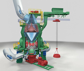 煤立磨機(jī)由電動(dòng)機(jī)驅(qū)動(dòng),通過行星減速機(jī)帶動(dòng)磨煤機(jī)磨盤轉(zhuǎn)動(dòng),磨盤上的2-4個(gè)磨輥在磨盤的帶動(dòng)下轉(zhuǎn)動(dòng),經(jīng)落煤管進(jìn)來的原煤分布在磨盤上,由于液壓加載力的作用,磨輥與磨盤之間產(chǎn)生擠壓使大顆粒原煤被壓碎。靠磨輥與磨盤的相對(duì)運(yùn)動(dòng)產(chǎn)生的滑動(dòng)摩擦力實(shí)現(xiàn)小顆粒煤被碾碎;原煤在磨內(nèi)被碾磨的同時(shí),被通入立磨機(jī)的熱風(fēng)(一般在300℃以下)烘干掉原煤的水分,達(dá)到成品煤粉規(guī)定的要求;碾磨后的煤粉,通過一次風(fēng)輸送進(jìn)入分離器進(jìn)行分離。分離出合格的煤粉被輸送至煤粉倉,不合格的粗煤粉返回到磨內(nèi)重新進(jìn)行研磨。