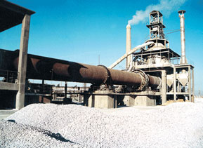 石灰石在預(yù)熱器被1150°C窯煙氣加熱到900°C左右,約有30%分解,經(jīng)液壓推桿推入回轉(zhuǎn)窯內(nèi),石灰石在回轉(zhuǎn)窯內(nèi)經(jīng)燒結(jié)分解為CaO和CO2。分解后生成的石灰石進(jìn)入冷卻器,在冷卻器內(nèi)被鼓入的冷空氣冷卻到100°C一下排出。經(jīng)熱交換的600°C熱空氣進(jìn)入窯和煤氣混合燃燒。廢氣在兌入冷風(fēng)經(jīng)引風(fēng)機(jī)進(jìn)入袋式除塵器,再經(jīng)排風(fēng)機(jī)進(jìn)入煙囪。