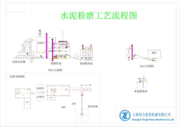 物料→烘干→磨機(jī)→選粉機(jī)→水泥庫(kù)